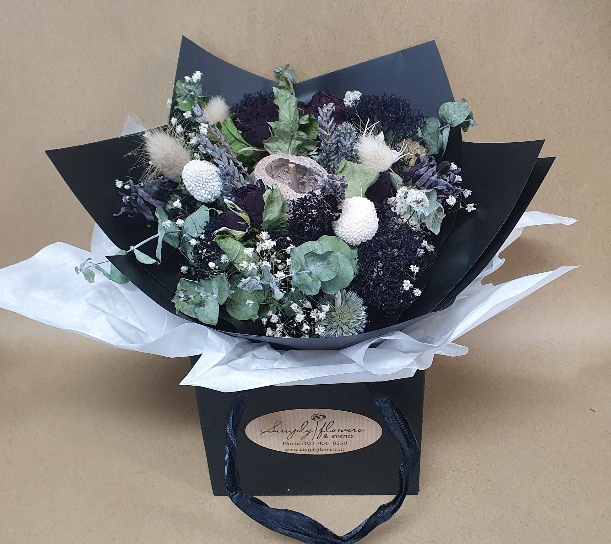 Our dried floral bouquets are florist choice and expertly arranged by our amazing staff.