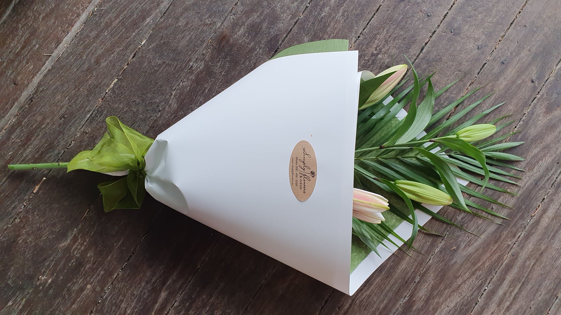 Our Lily Cones are simple but stylish and can be wrapped in craft or black and White pearl wrap.