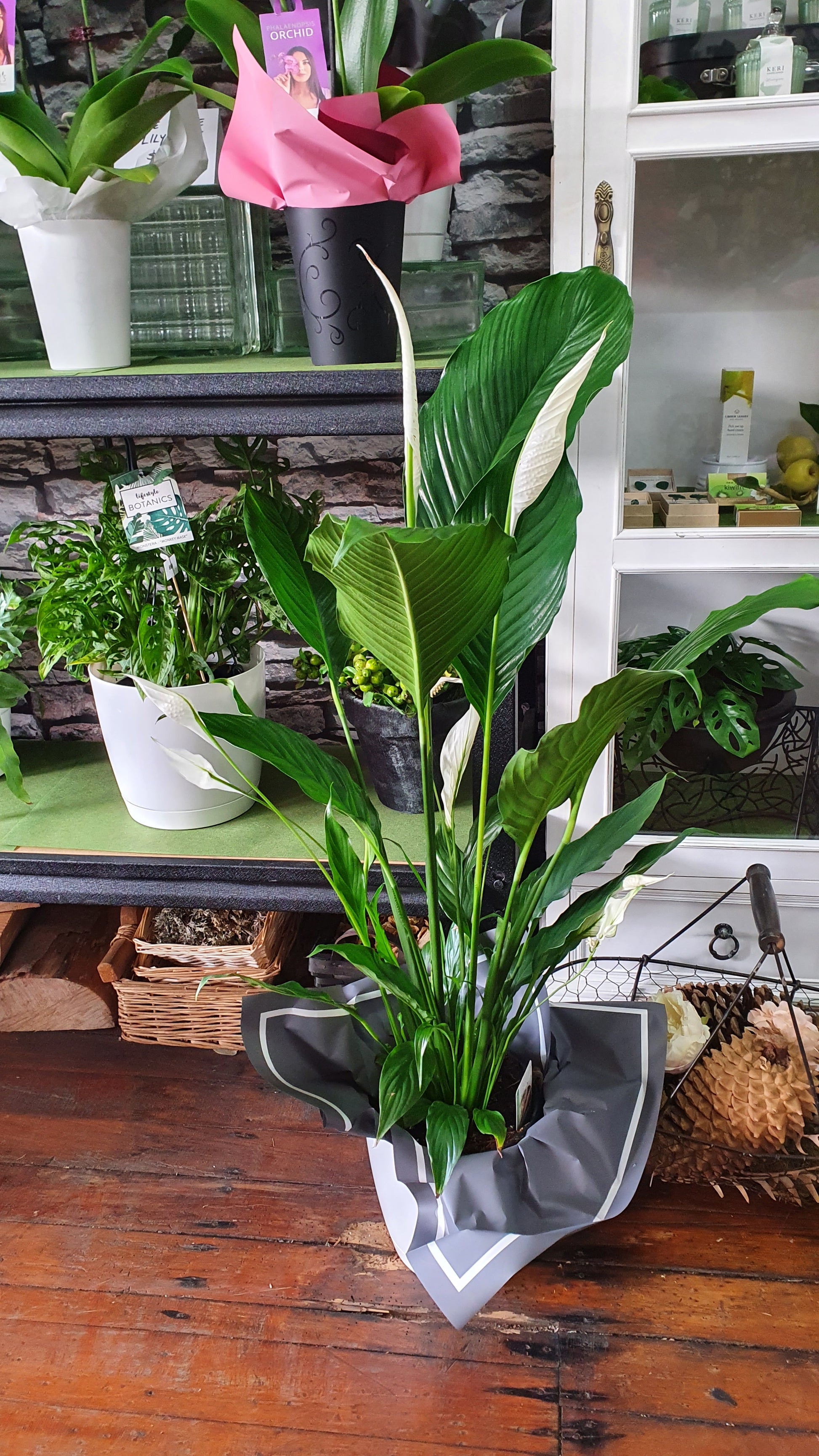 Flowering plants will be selected by our florist from a variety of kalenchoe, chrysanthemum, tulips, daffs, monstera, peace lily and other flowering plants available and in season. These will vary and will depend on value and availability.