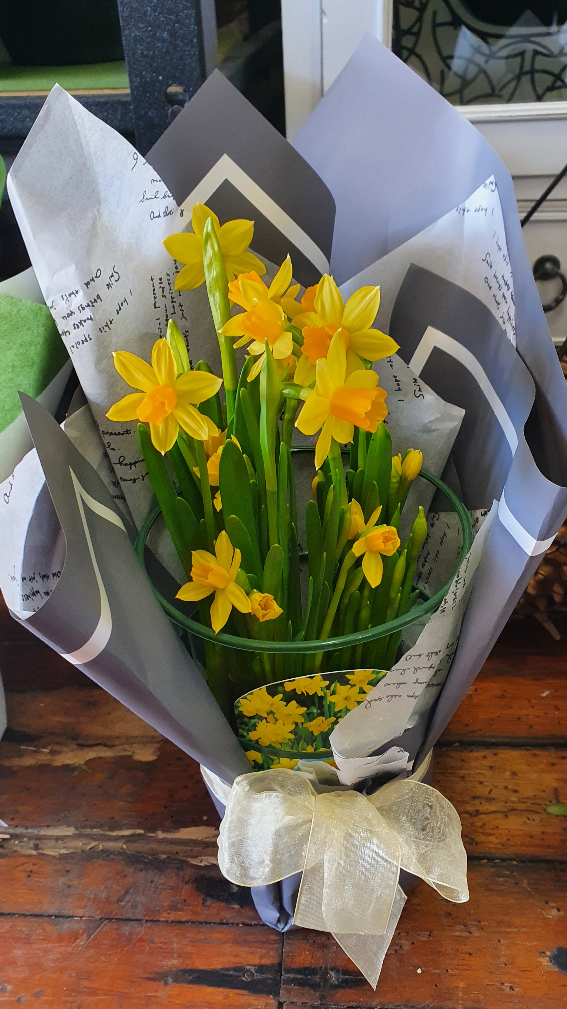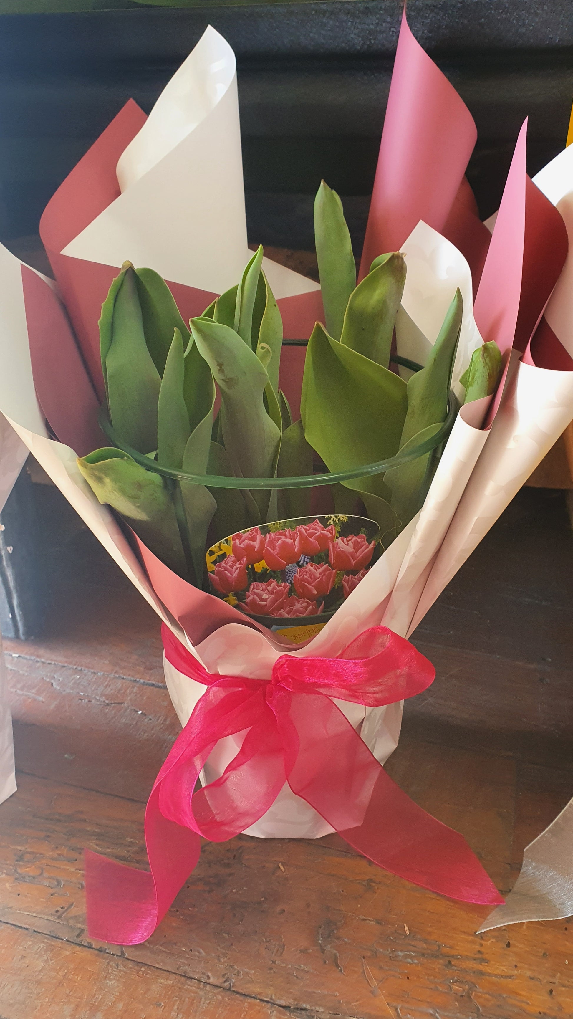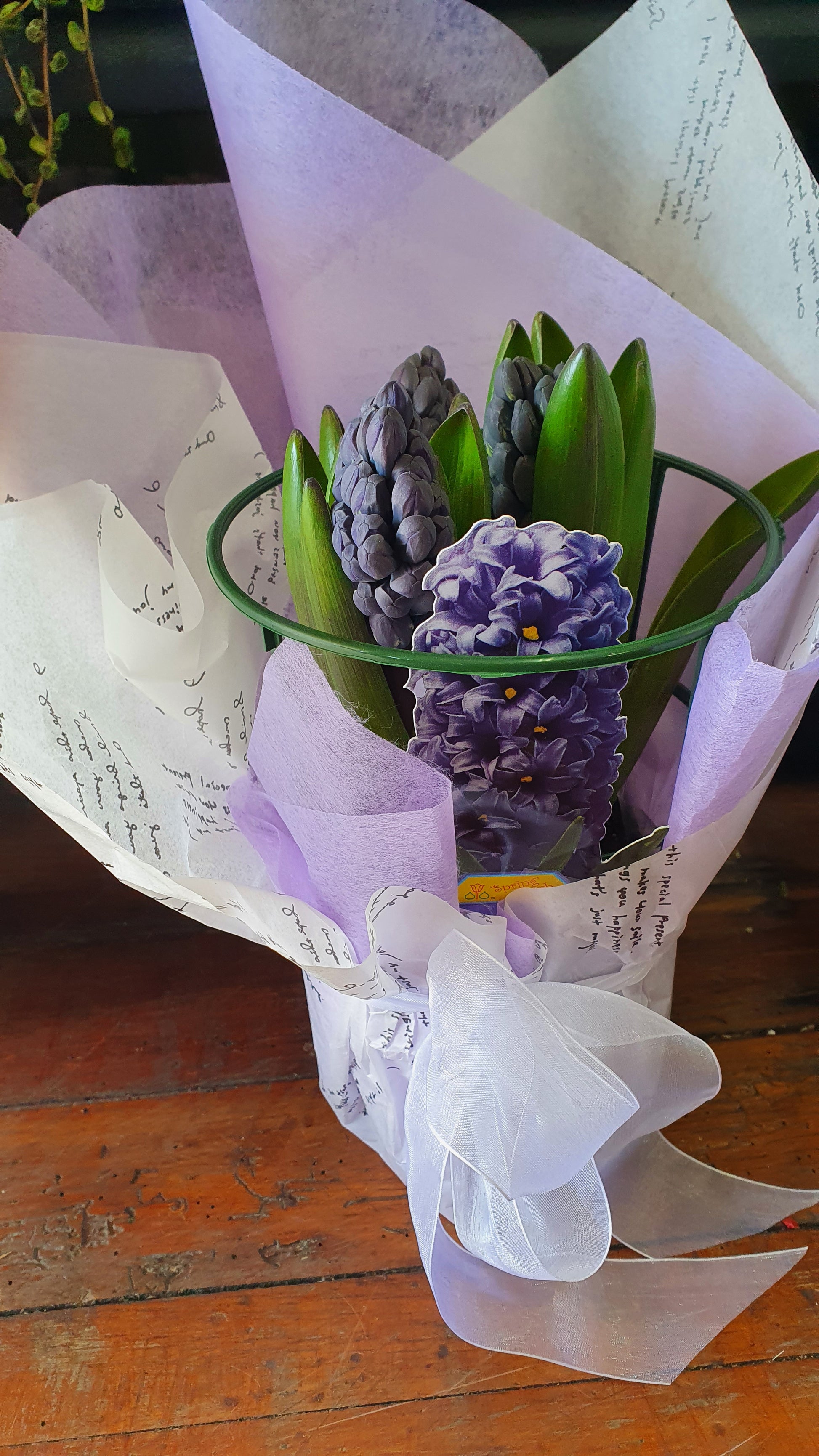 Flowering plants will vary to those pictured and will be selected as close as possible to the picture due to seasonal availability. Wrap may also vary to that picture and will be selected to compliment the flowers.